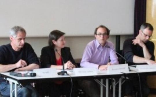 La table ronde 2014 réunit à l'ENS Pierre dit l'Idéaliste, Christine Genin, Bernard Massip, Christophe Grossi.